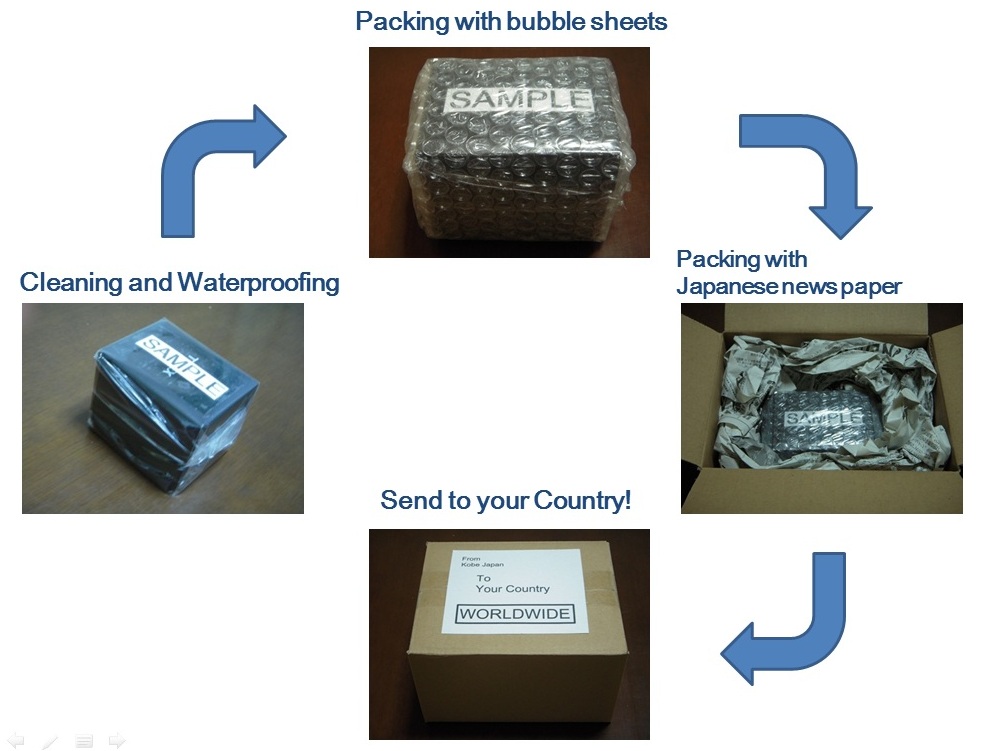 We will carefully pack the items using the packing material(Bubble sheets and Japanease newspaper).